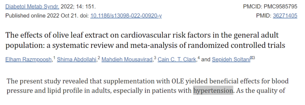על פי מטה אנליזה רחבה שהתפרסמה אודות הפעילות הרפואית של מיצוי עלי הזית, הנתונים הראו כי ישנה ירידה מובהקת ברמות לחץ הדם אחרי שימוש במיצוי, במיוחד עבור אנשים שאכן סובלים מלחץ דם גבוה.